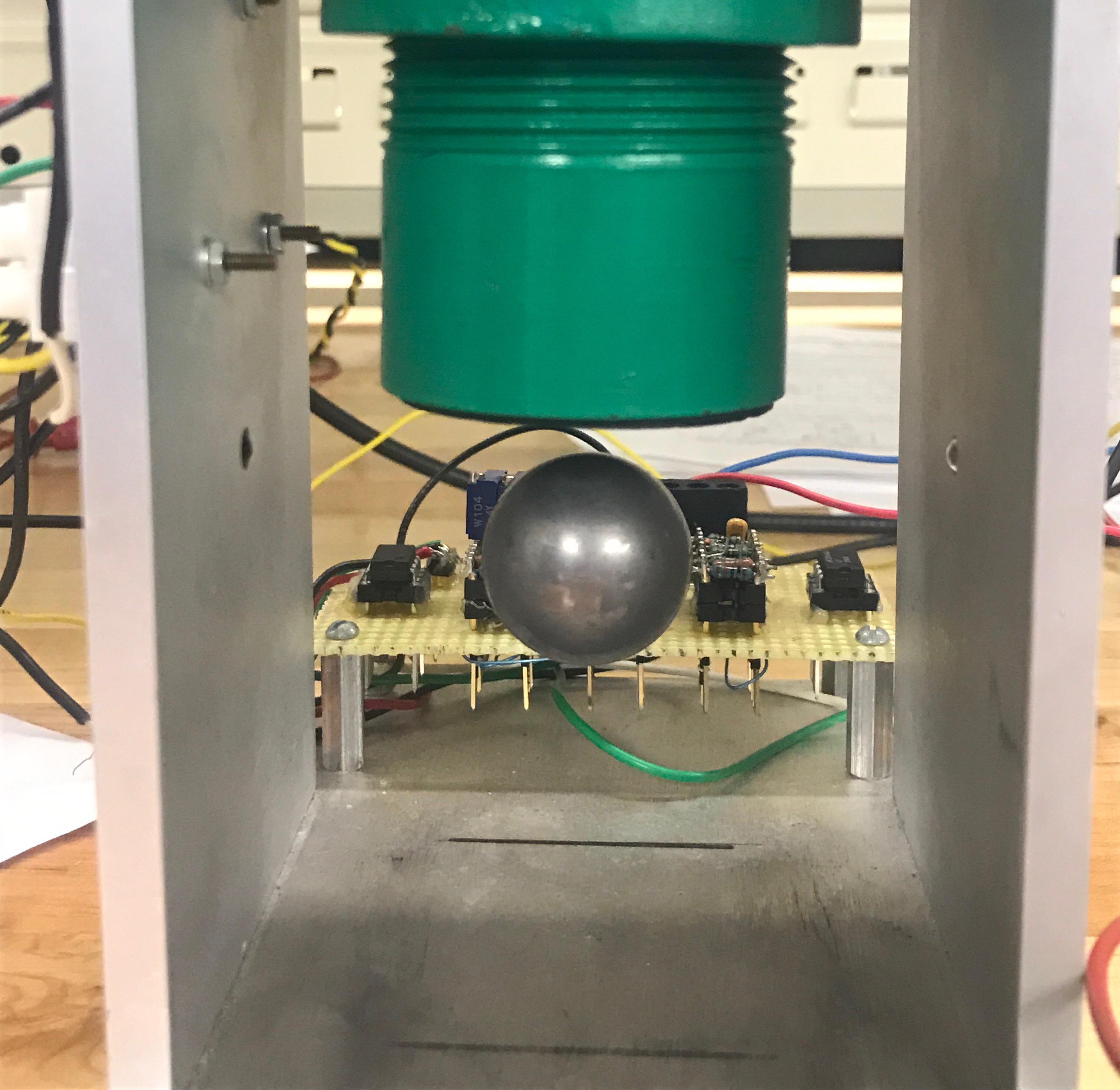 Built system for levitating steel ball with electromagnet for pid control with an analog implementation.